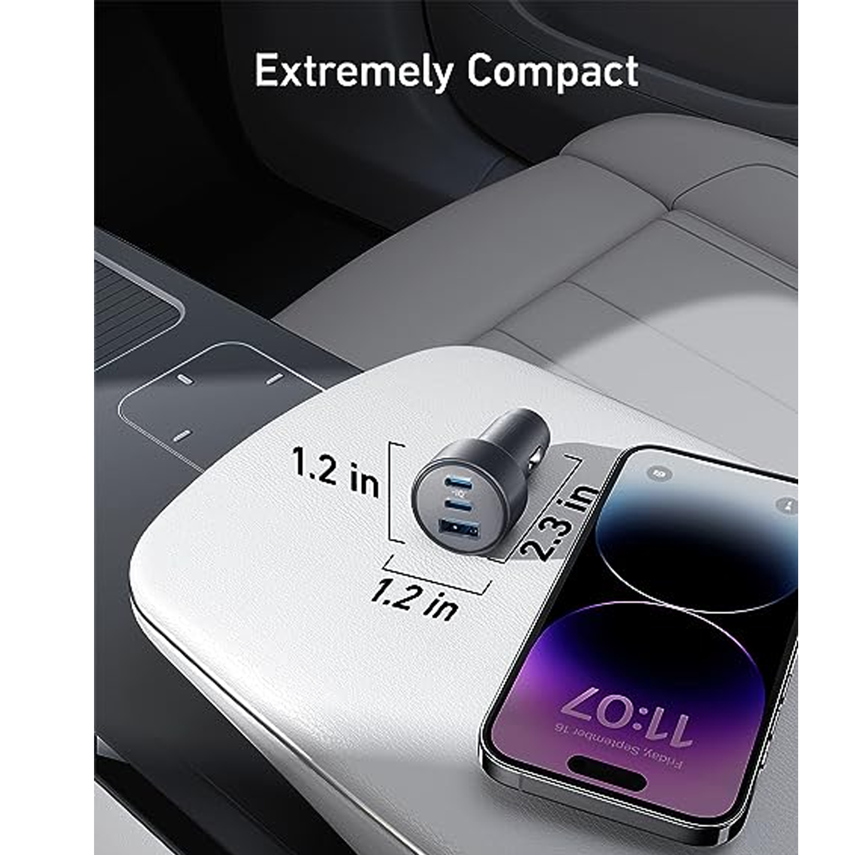 اشحن عدة أجهزة أثناء تنقلك مع شاحن السيارة Anker 335. بقوة إجمالية تبلغ 67 واط، يتميز بمنفذي USB-C ومنفذ USB-A، مما يتيح لك شحن هاتفك الذكي أو جهازك اللوحي أو أي أجهزة أخرى بسرعة في آنٍ واحد. بفضل تصميمه الأنيق وصغير الحجم، يُعدّ الحلّ الأمثل لشحن سيارتك.