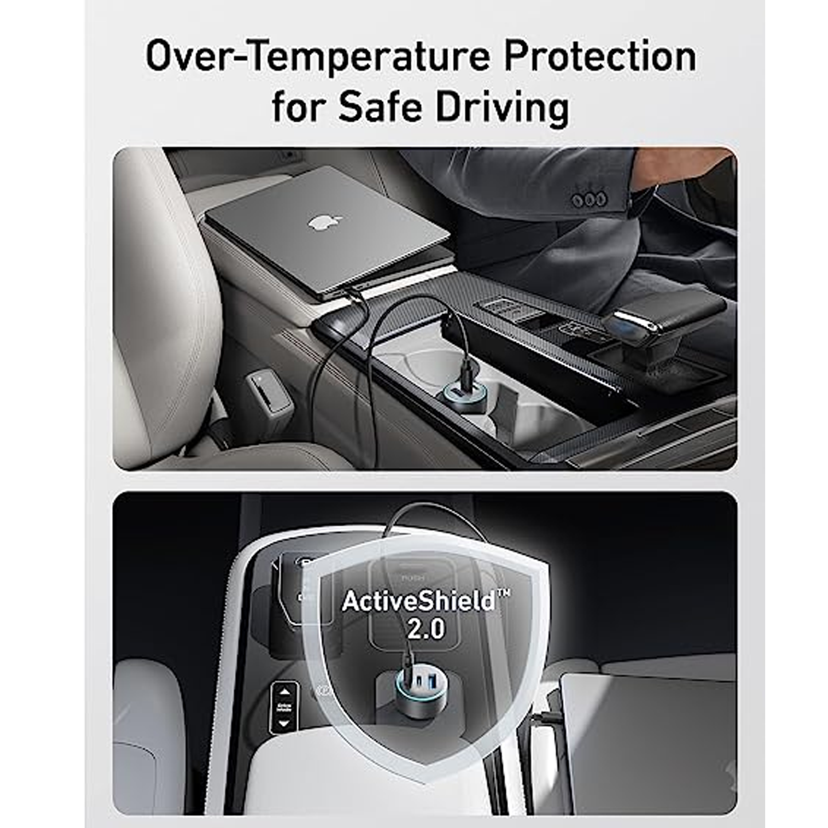 شاحن سيارة Anker 335 بقوة 67 واط، منفذي USB-C وUSB-A – أسود