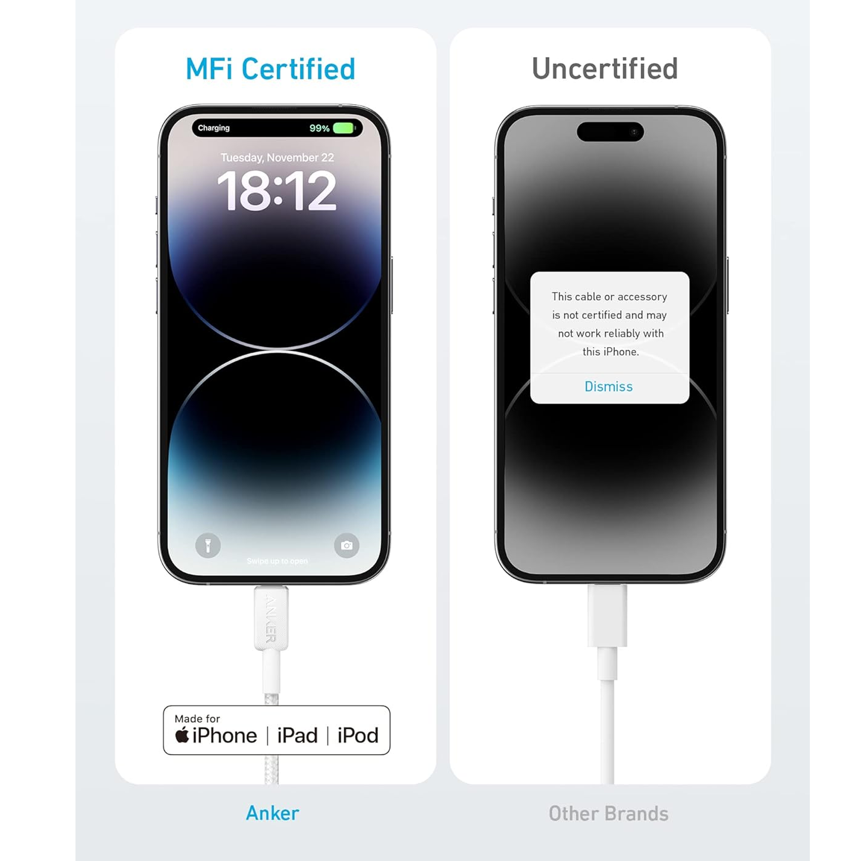 حصلنا على شهادة Apple MFi: بالإضافة إلى الحصول على شهادة Apple MFi، أجرينا عمليات تفتيش صارمة للجودة، حتى تتمكن من شحن أجهزة Lightning الطرفية مثل iPhone وAirPods بأمان وسرعة.