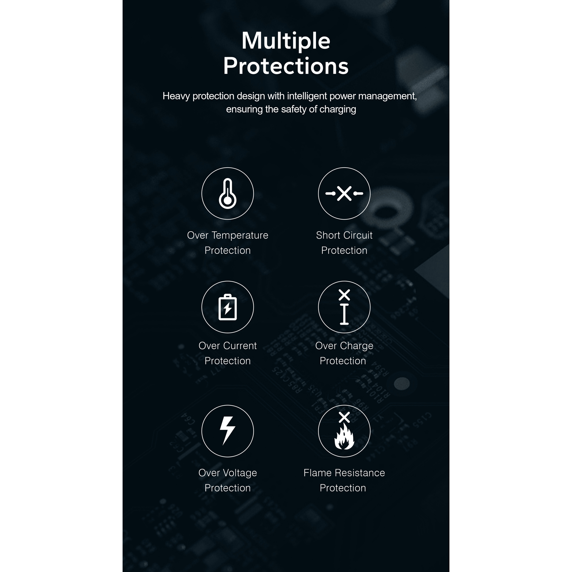 حماية السلامة: مزود بحماية من الشحن الزائد والتيار الزائد والماس الكهربائي وارتفاع درجة الحرارة.