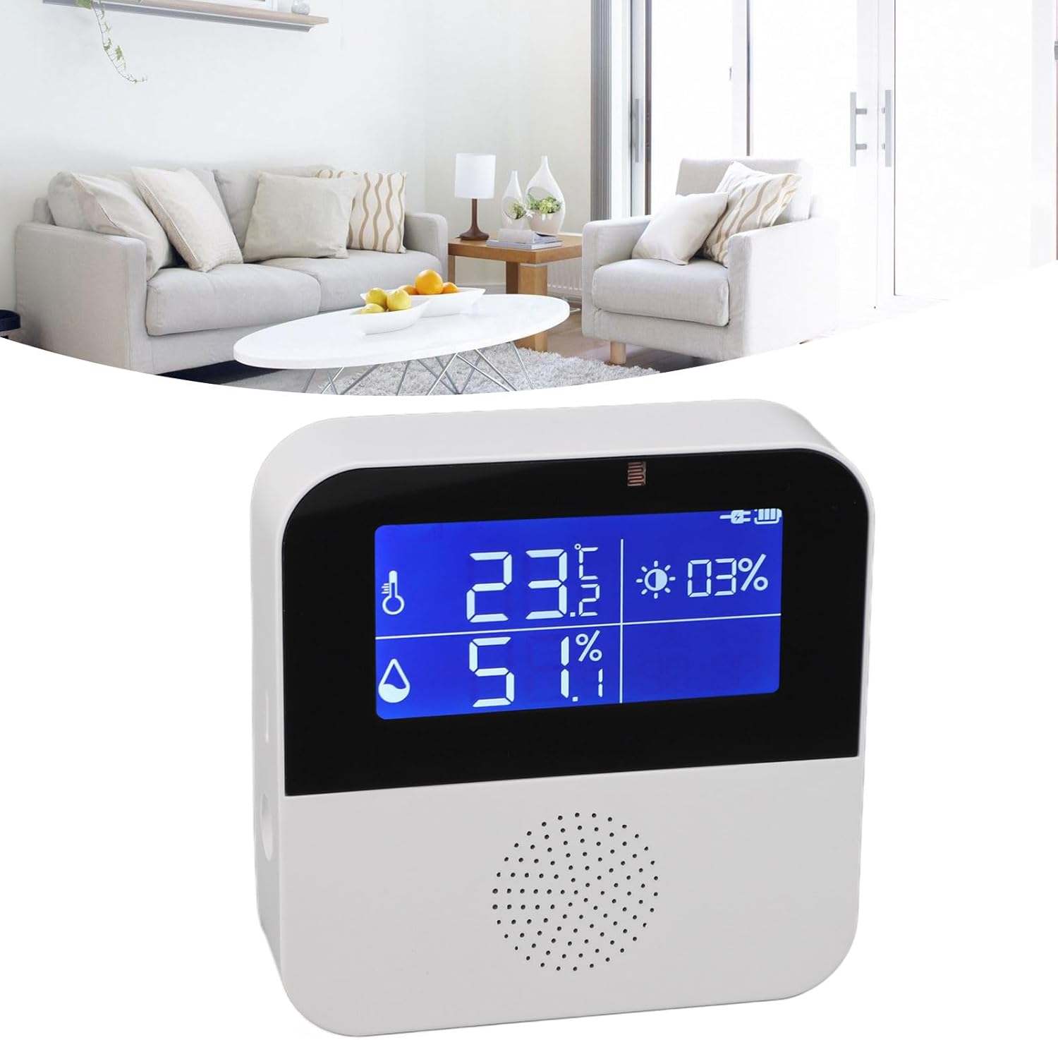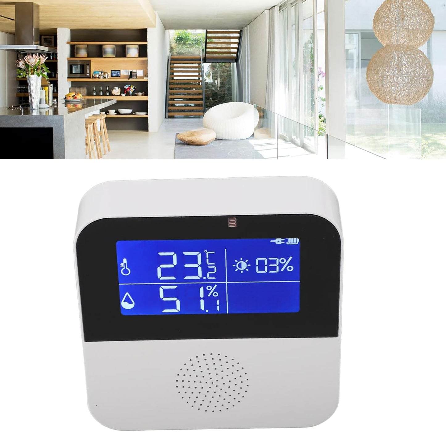 - شاشة LCD مقاس 2.9 بوصة: يتميز مقياس الحرارة الخاص بنا بشاشة LCD واضحة وسهلة القراءة مقاس 2.9 بوصة. توفر معلومات أساسية مثل درجة الحرارة والرطوبة والتاريخ والسطوع والوقت. يمكنك حتى التبديل بين وحدات مئوية وفهرنهايت، مما يزيل أي ارتباك ناتج عن قياسات وحدات مختلفة في بلدان مختلفة.