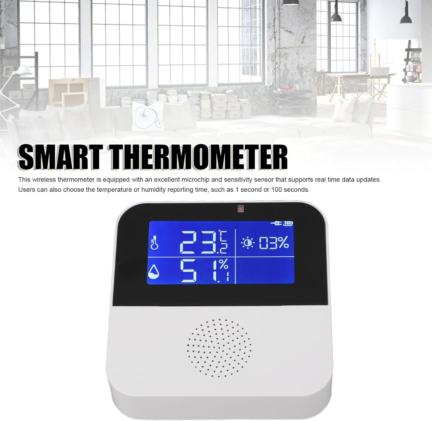 - تحديثات البيانات في الوقت الفعلي: تم تجهيز مقياس الحرارة الخاص بنا بشريحة دقيقة متقدمة ومستشعر حساسية يوفران تحديثات للبيانات في الوقت الفعلي. يتمتع المستخدمون بالمرونة في اختيار فترة زمنية للإبلاغ، تتراوح من ثانية واحدة إلى 100 ثانية. ابق على اطلاع وراقب التغيرات في درجات الحرارة والرطوبة في الوقت الفعلي.