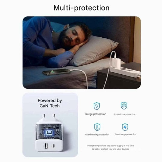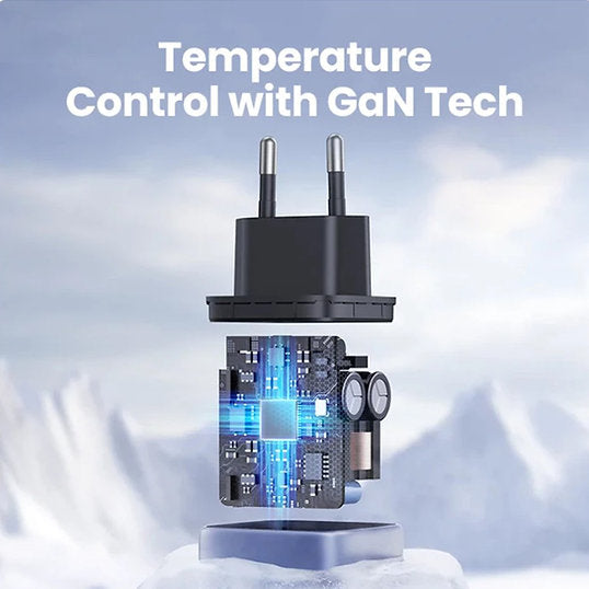The adapter has a GAN chip, 30% lower temperature when used than ordinary chargers and a more compact size (mini size)