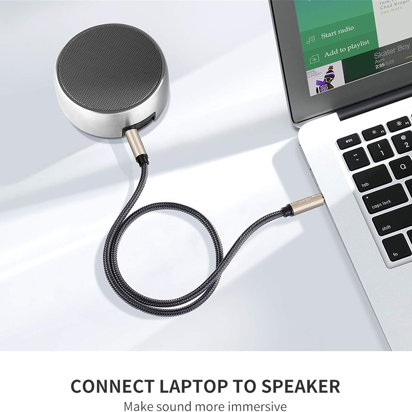 جودة صوت فائقة: كابل يوجرين AUX مصنوع من نحاس مطلي بالفضة لضمان جودة صوت عالية الدقة استثنائية. المقاومة الكهربائية للفضة أقل بكثير من النحاس، مما يضمن أقصى قدر من التوصيل ونقل الصوت بشكل مثالي.