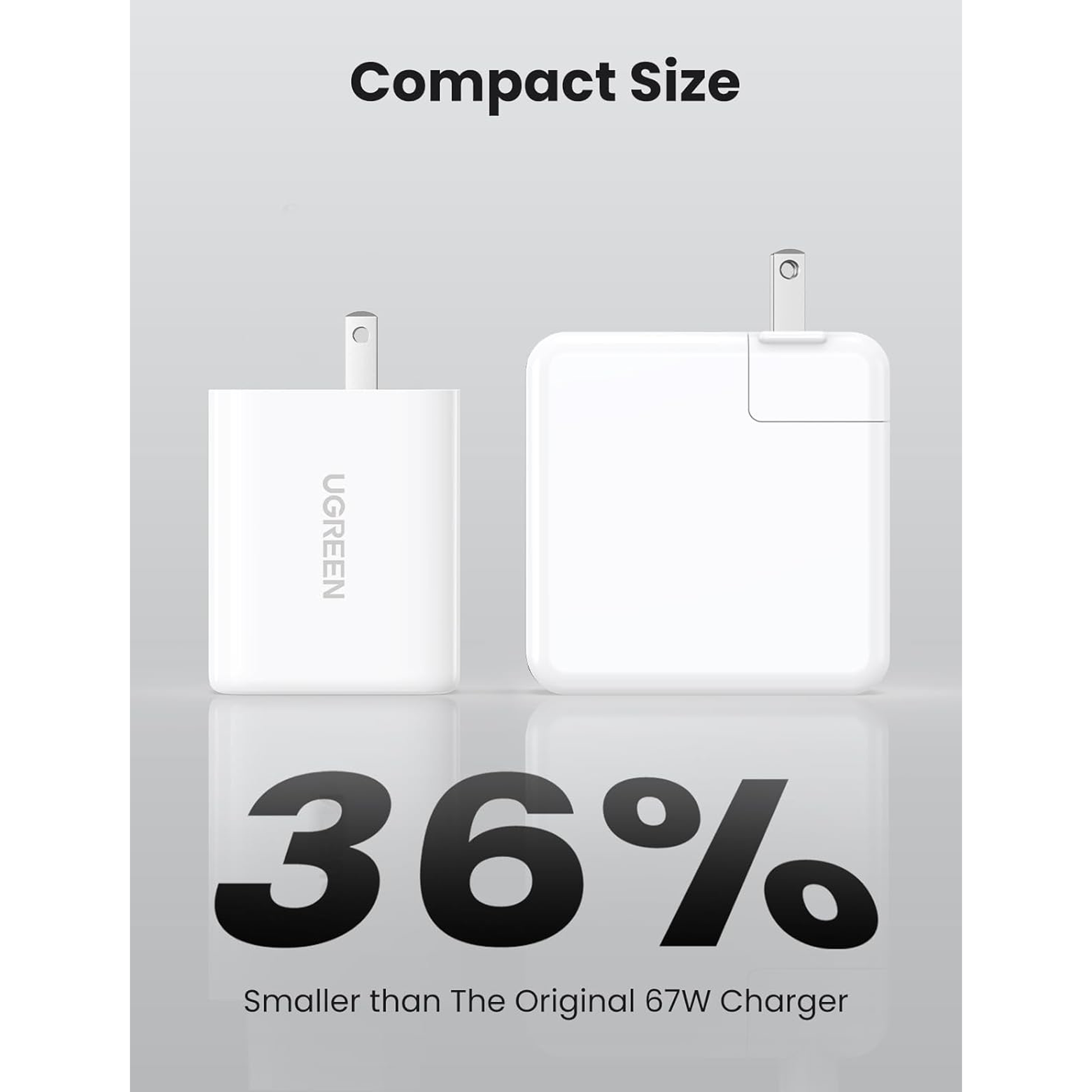 شاحن يوجرين بقوة 65 وات ، 3 منافذ، شاحن حائط سريع قابل للطي / 90496
