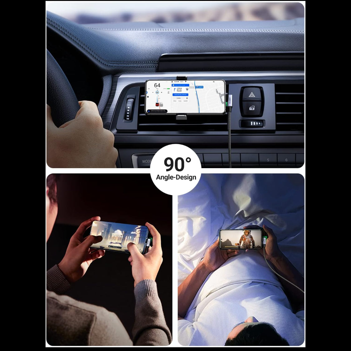 90 Degree Design: This Right Angle USB C Cable provides a comfortable holding for the phone when charging and using the phone at the same time; Meanwhile, the right-angle design protects the cable from excessive bending