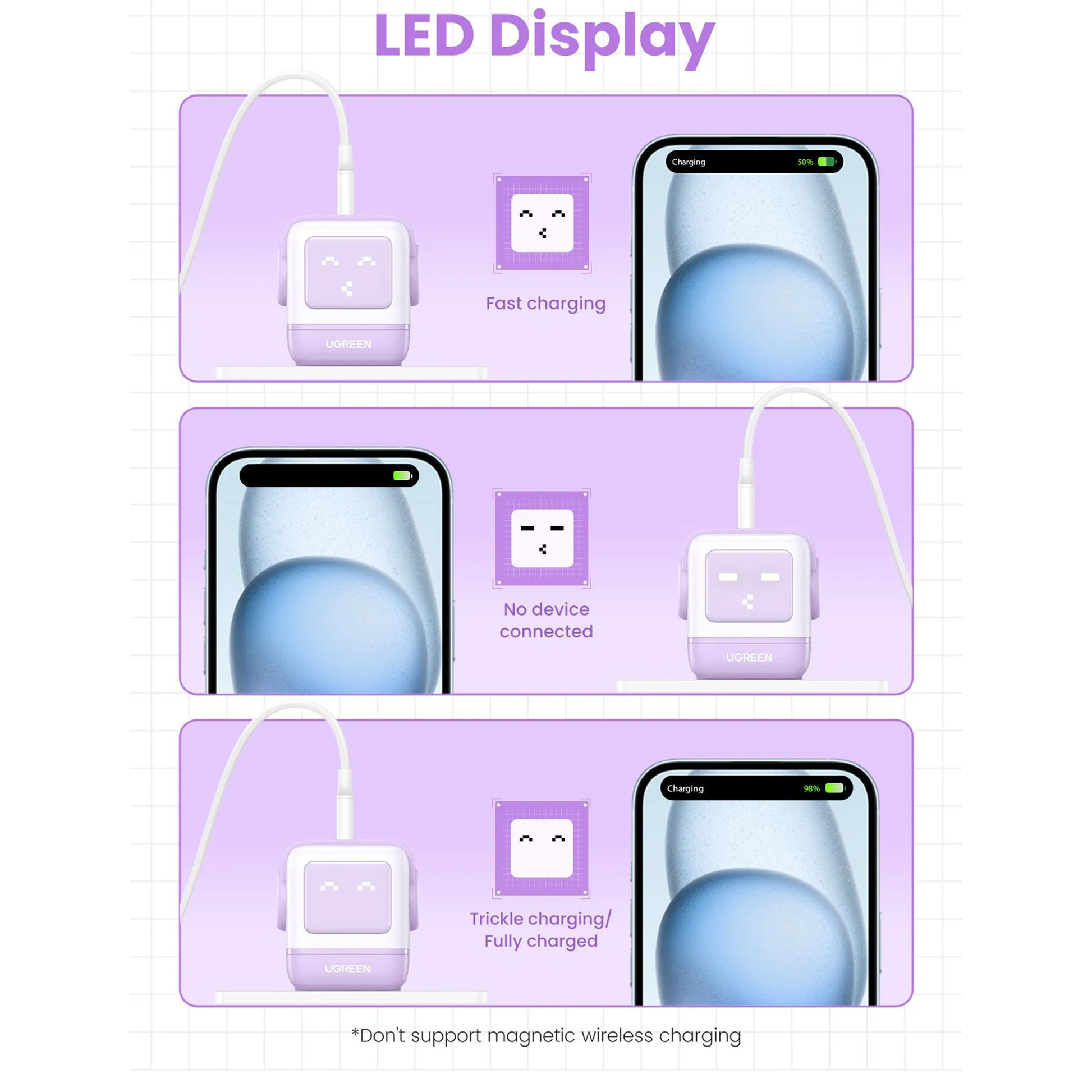 UGREEN Uno، للقوة والمتعة: أول شاحن روبوت من UGREEN يصل إلينا! بفضل تصميمه الروبوتي الصغير وقدرته القصوى على الشحن التي تصل إلى 65 واط، يتناسب شاحن USB-C اللطيف هذا تمامًا مع سطح مكتبك. شاحن UGREEN Uno 65W المستقبلي، بتصميمه الجذاب، يجمع بين الأداء العملي والمرح، وهو هدية مثالية للعائلة والأصدقاء.