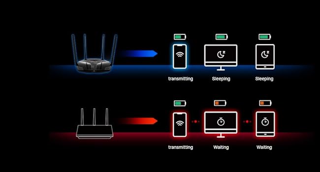 - 4× More Capacity – OFDMA and MU-MIMO allow simultaneous data transmission to and from several devices, improving overall network efficiency