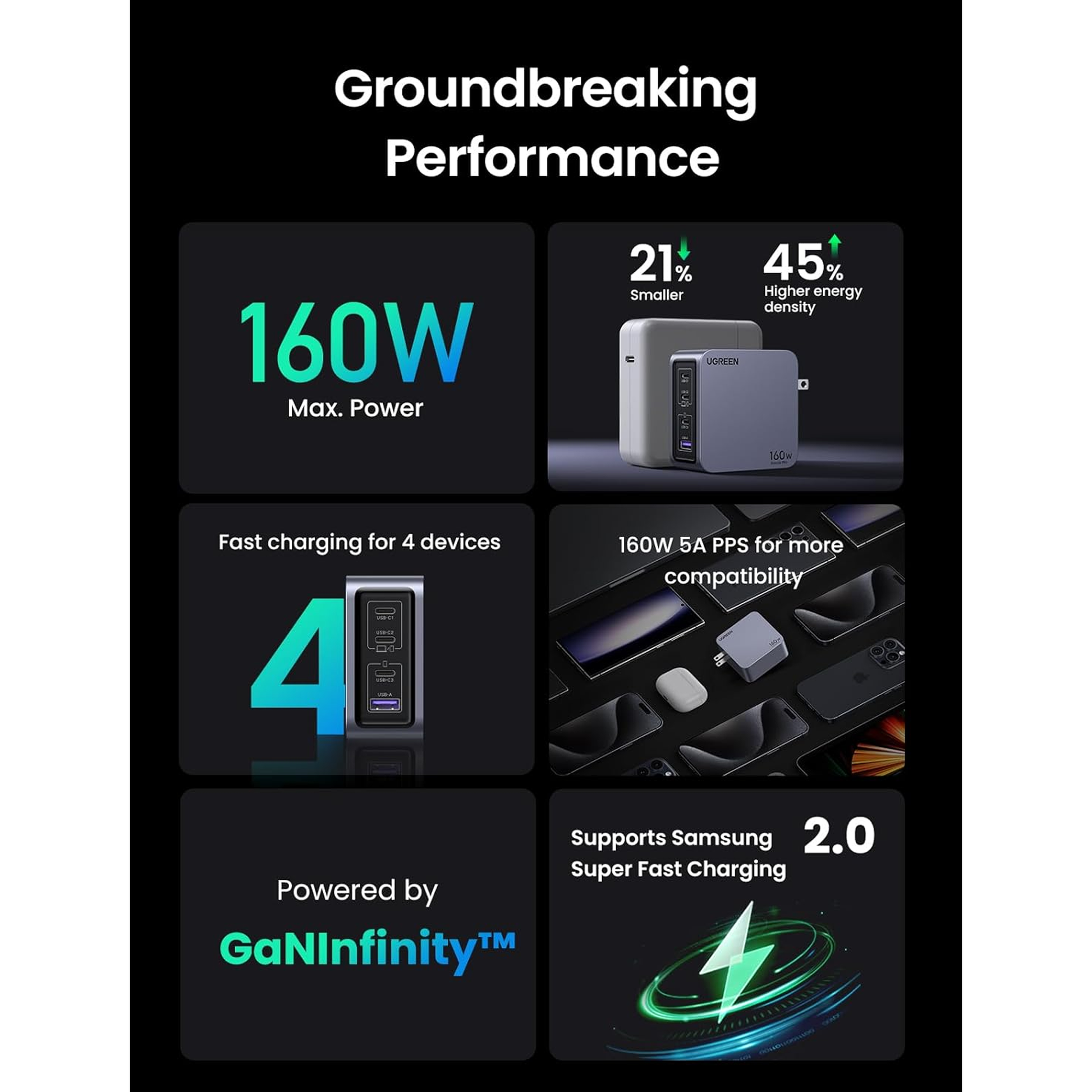 Ugreen Nexode 160W USB C GaN Charger-4 Ports Wall Charger