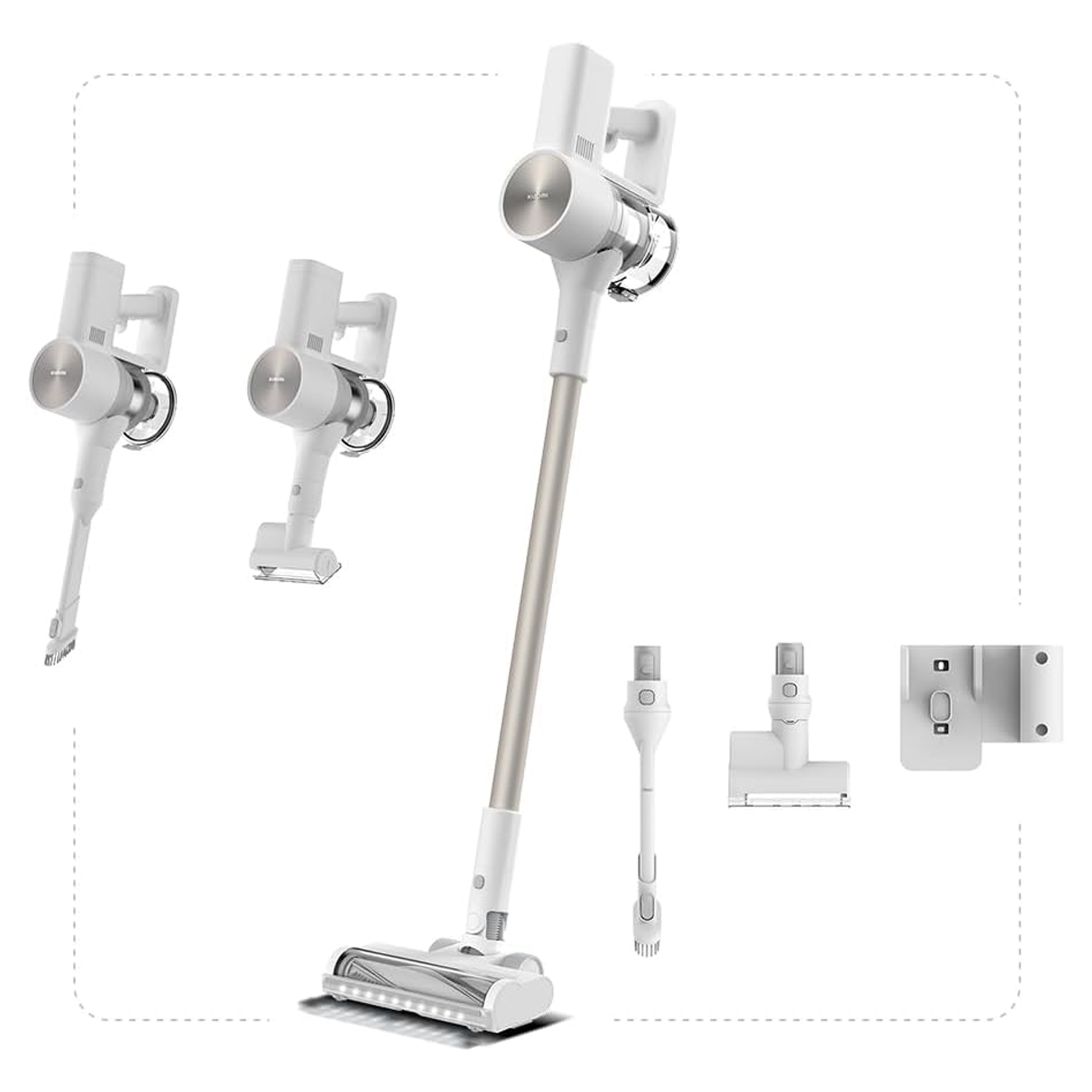 With strong suction, long battery life, and a searchlight, clean the whole house Up to 150AW powerful suction Rapidly vacuum large particles Featuring an upgraded high-performance brushless motor with a maximum suction power of 150AW, 25% higher than the previous generation, it effectively removes large debris, long hair on carpets, and dust from deep gaps.